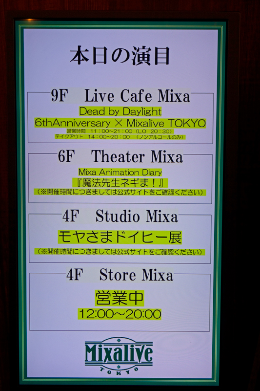 ミクサライブ東京1階のインフォメーションには、「魔法先生ネギま!」の文字が。